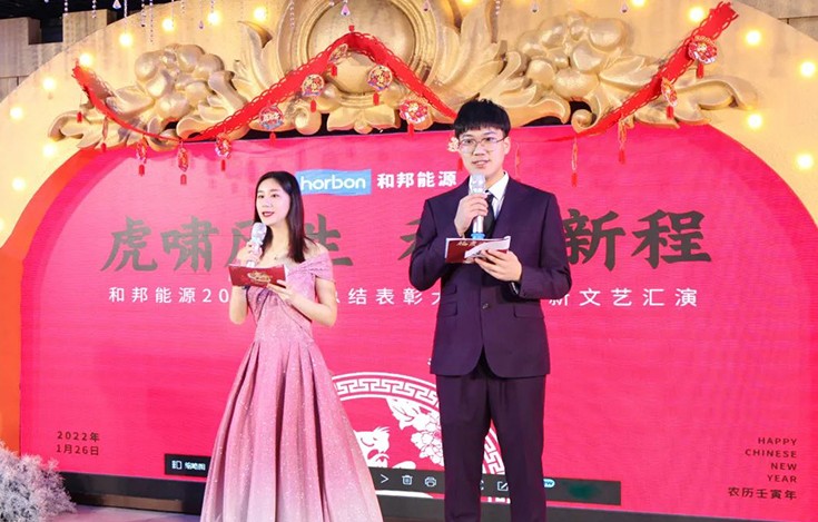 2022年1月26日,南京和邦能源科技有限公司及其子公司南京和邦动力工程有限公司、南京中利德机电设备科技有限公司员工共计70人在南京总部欢聚一堂,举行“虎啸风生、和邦新程——2021年度总结表彰大会暨迎新文艺汇演”年终庆典活动。感恩全员努力,不负用户所托,但听虎啸风生,共赴和邦新程。